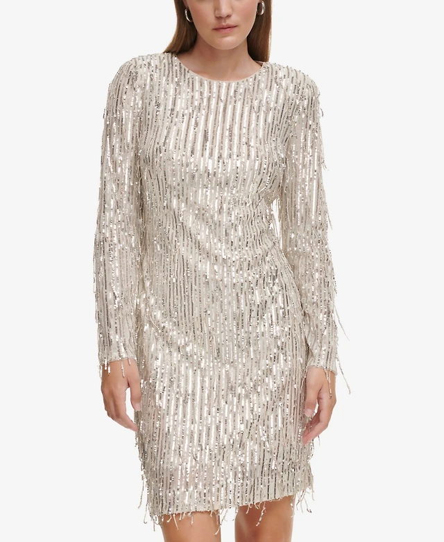 Lara Women's Long Sleeve Beaded Cocktail Dress