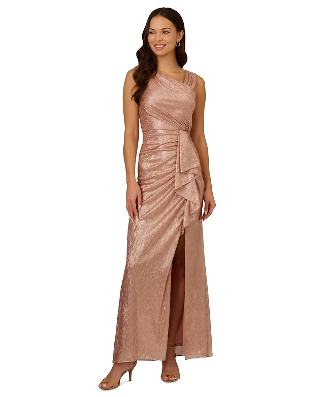 Tadashi Shoji Women's Mona Pleated Metallic Halter Gown