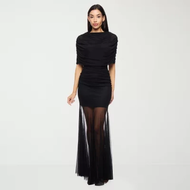 DJ Jaz Womens Long Sleeve Satin Evening Gown