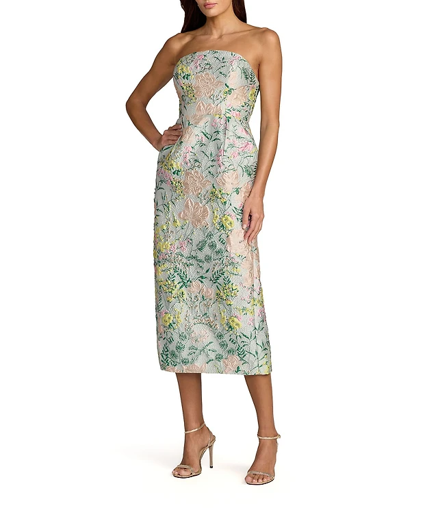 Mac Duggal Petite Size Floral Brocade Strapless Fitted Midi Gown
