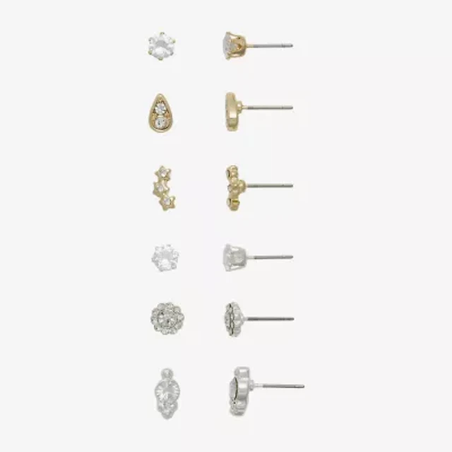 Womens Cubic Zirconia Sterling Silver Round Pair Earring Set