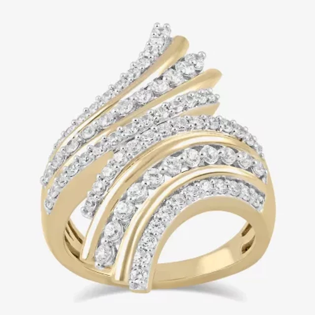 (G-H / SI2-I1) Womens 1 CT. T.W. Lab Grown White Diamond 10K or Yellow Gold Cocktail Ring