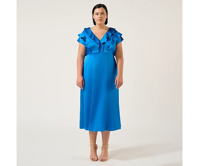 Dkny Women's Crinkle Detail Fit and Flare Midi Dress