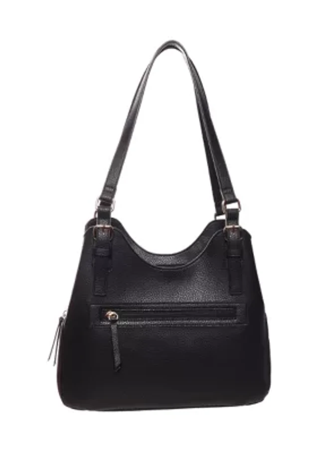 Nubuck Studded Trim Triple Entry Bucket Crossbody