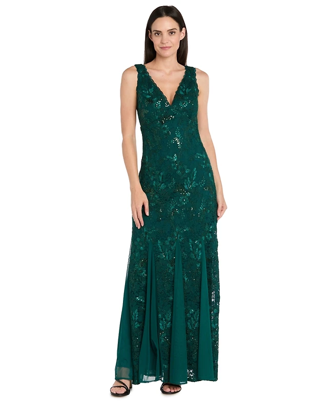 R & M Richards Petite Sequin Detail V-Neck Maxi Dress