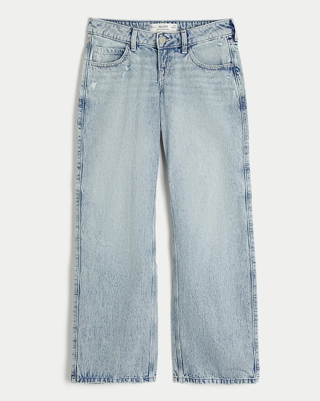 Hollister Andi Adjustable Waist Low-Rise Distressed Light Wash Baggy Jeans