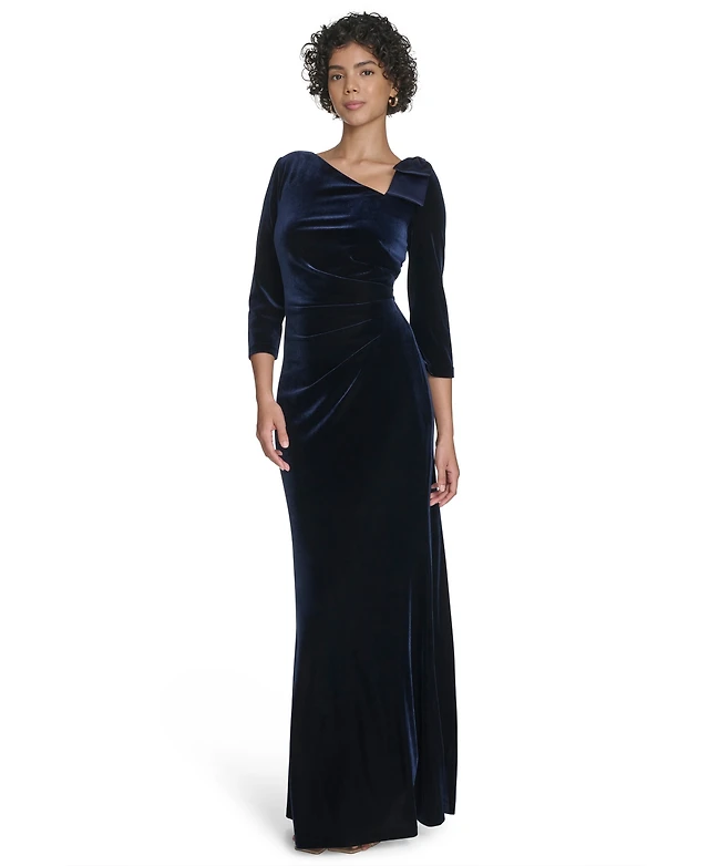 Betsy & Adam Women's Long Ruched Off-the-Shoulder Gown