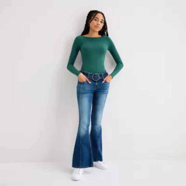 Arizona Womens Juniors Plus Low Rise Stretch Fabric Flare Leg Jean