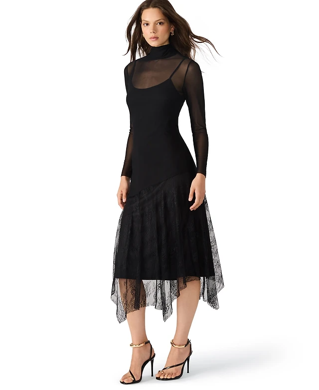 Sydney's Closet Sequin & 3D Floral Lace Mini Black Party Dress