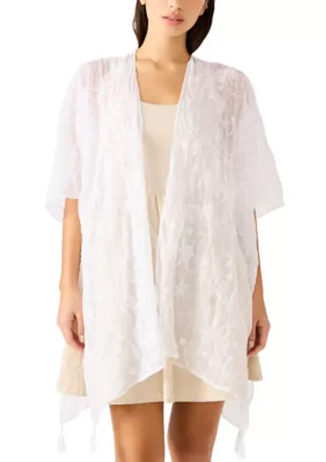 Cropped Tie Front Popcorn Shawl