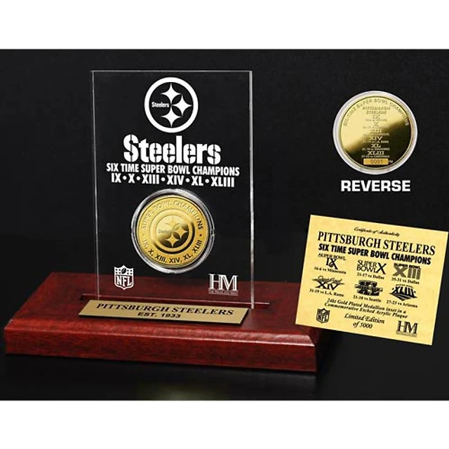 Pittsburgh Steelers 6X Super Bowl Champions 24kt Gold Coin Etched Desktop Acrylic