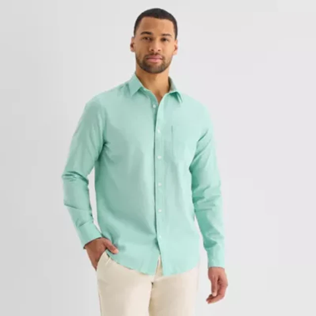 St. John's Bay Linen Blend Mens Short Sleeve Classic Fit Button-Down Shirt
