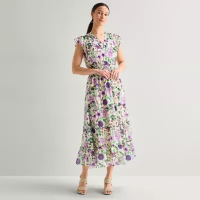 24seven Comfort Apparel Womens Short Sleeve Paisley Maxi Dress