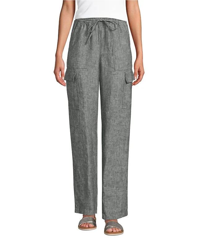 Lands' End Women's High Rise Drawstring Linen Cargo Pants