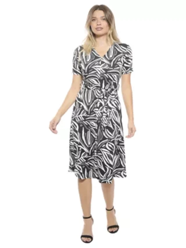 Women's Short Sleeve Belted Midi Dress