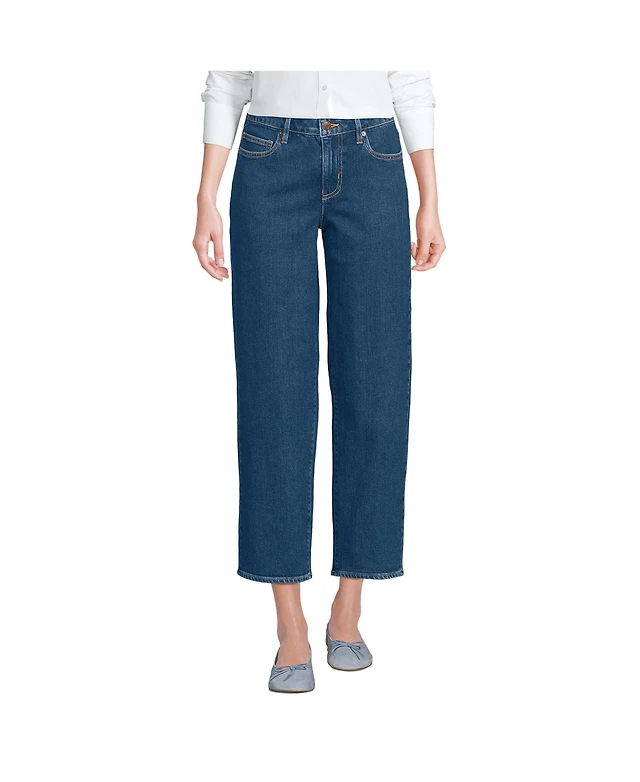 Lands' End Women's Lightweight Denim Mid Rise Pleated Slouchy Jeans