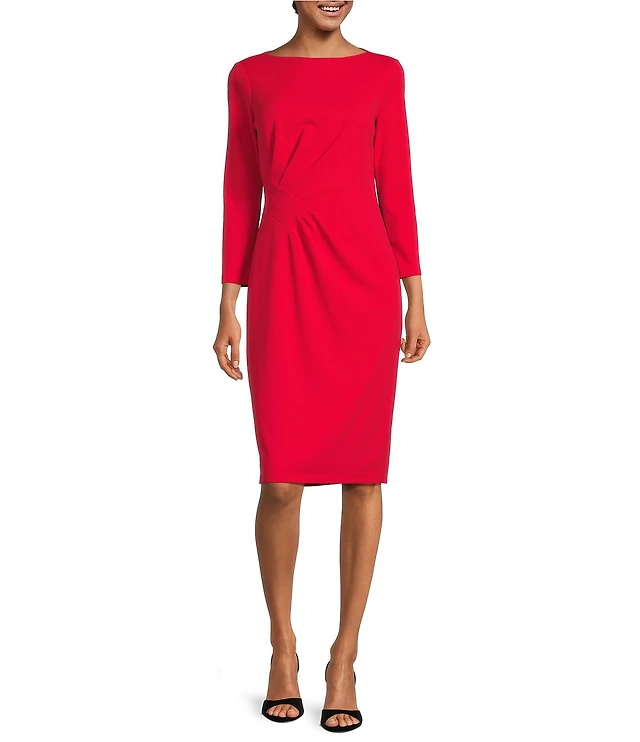 Adrianna Papell Plus Size Stretch Crepe 3/4 Bell Sleeve Sheath Dress