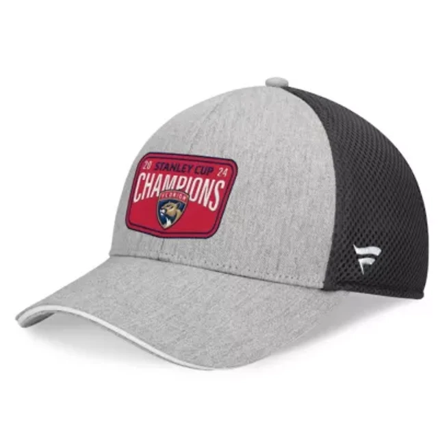 NHL Fanatics Gray/Charcoal Florida Panthers 2024 Stanley Cup s Locker Room Meshback Structured Adjustable Hat