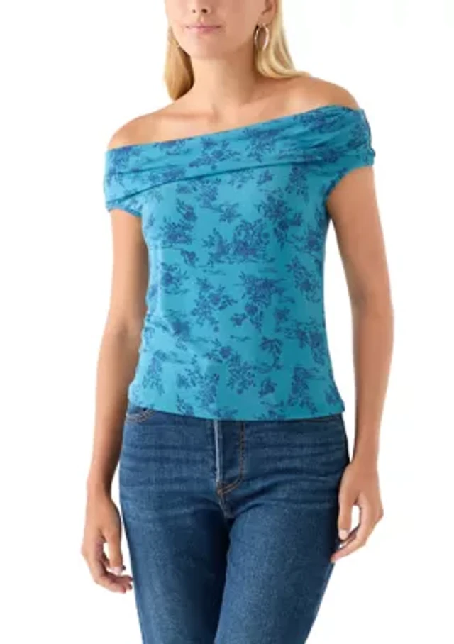 Women's Puff Shoulder Floral Scuba Knit Shirt