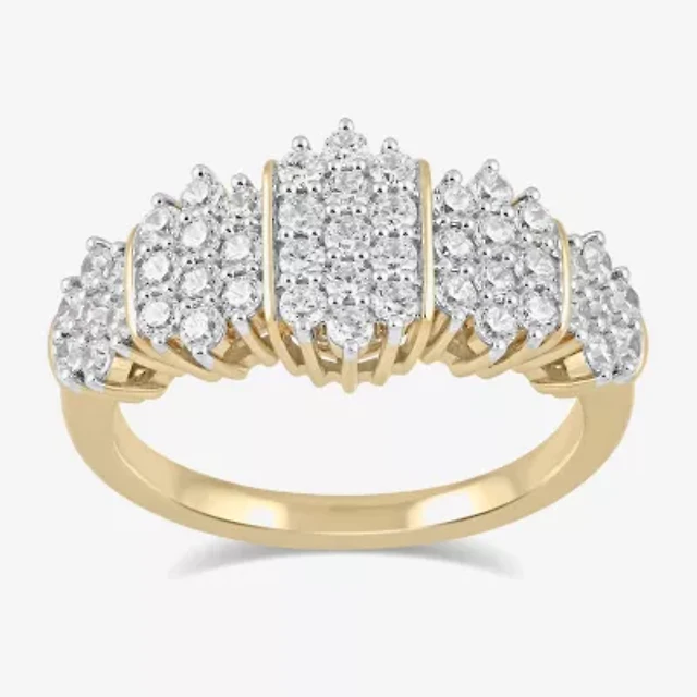 (H / I1-I2) Womens 1 CT. T.W. Lab Grown White Diamond 14K Gold Over Silver Cocktail Ring