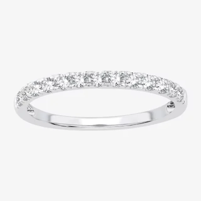 Silver Treasures Womens 2MM White Simulated Pearl Sterling Diamond Band