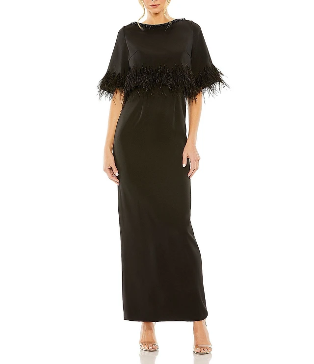 Ignite Evenings 3/4 Capelet Sleeve Round Neck Glitter Mesh Column Dress