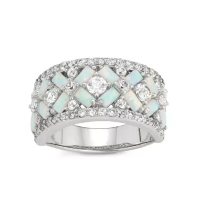 Personalized Womens Simulated Sterling Silver Heart 3-Stone Cocktail Ring