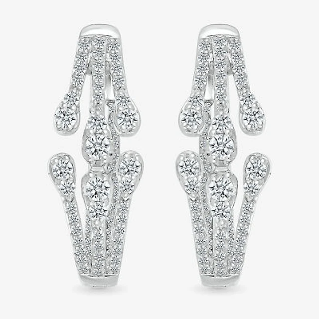 Silver Treasures Womens Crystal Sterling Silver Heart Drop Earrings