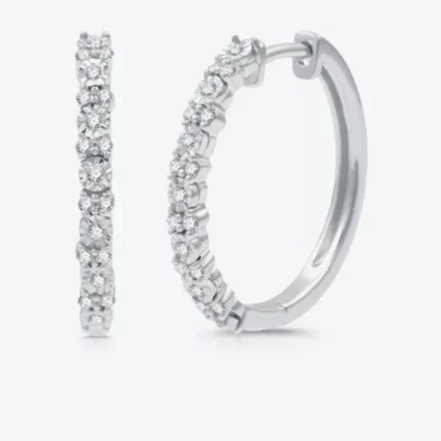 Womens Diamond Accent Natural White Diamond Sterling Silver 18mm Heart Hoop Earrings
