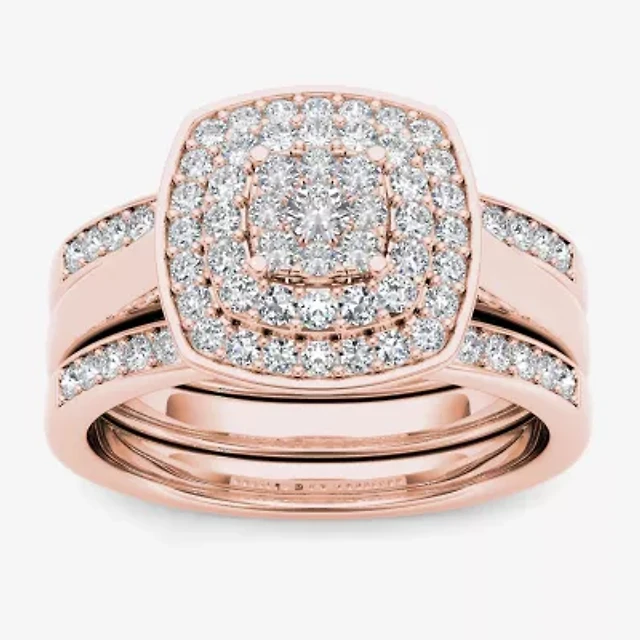 Womens 1/ CT. T.W. Natural White Diamond 10K Rose Gold Cushion Side Stone Halo Bridal Set