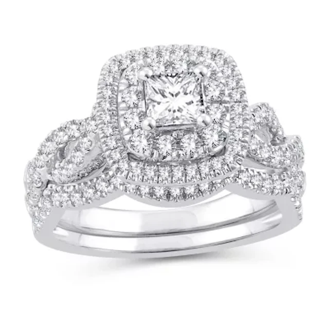 DiamonArt® Womens 3 CT. T.W. White Cubic Zirconia Platinum Over Silver Bridal Set