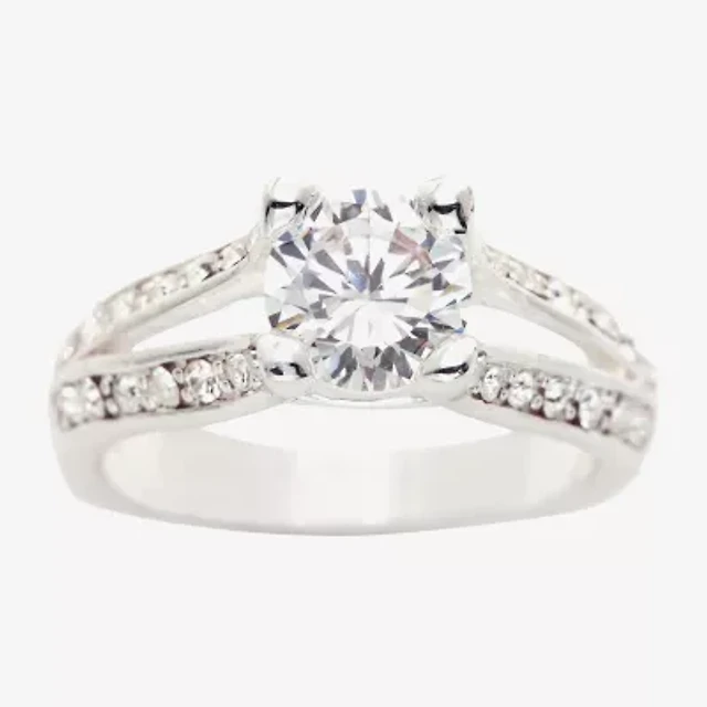 Sparkle Allure Split Shank Solitaire Womens Cubic Zirconia Pure Silver Over Brass Round Engagement Ring