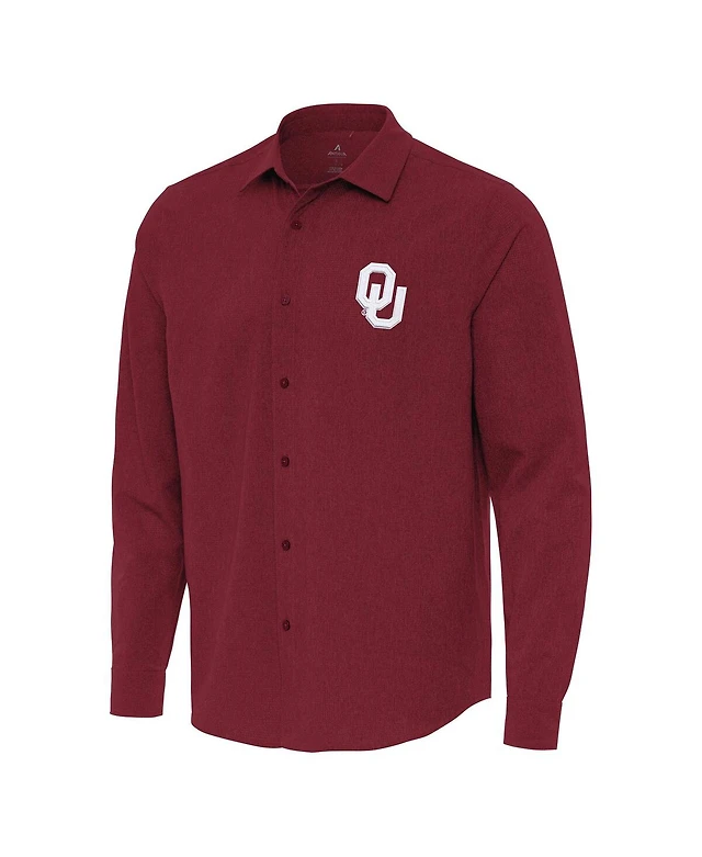 Antigua Men's Cardinal Oklahoma Sooners Exposure Woven Long Sleeve Button-Up Shirt