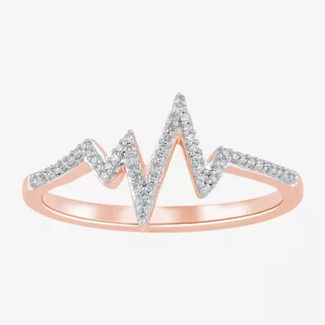 Womens 1/10 CT. T.W. Natural White Diamond 18K Rose Gold Over Silver Delicate Stackable Ring