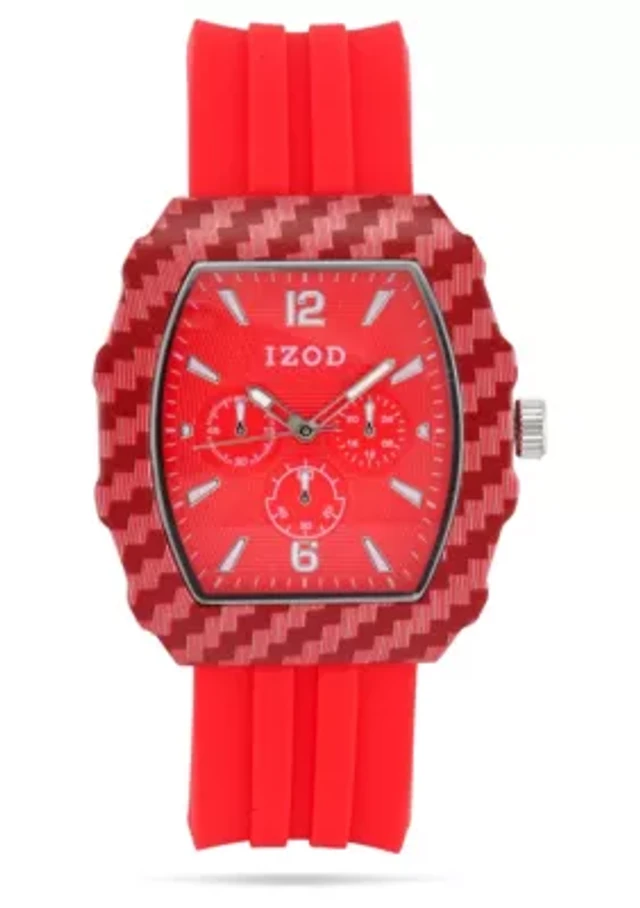 IZOD Adult Mens Analog Watch w Red Rubber Strap in Red Model# IZO9411