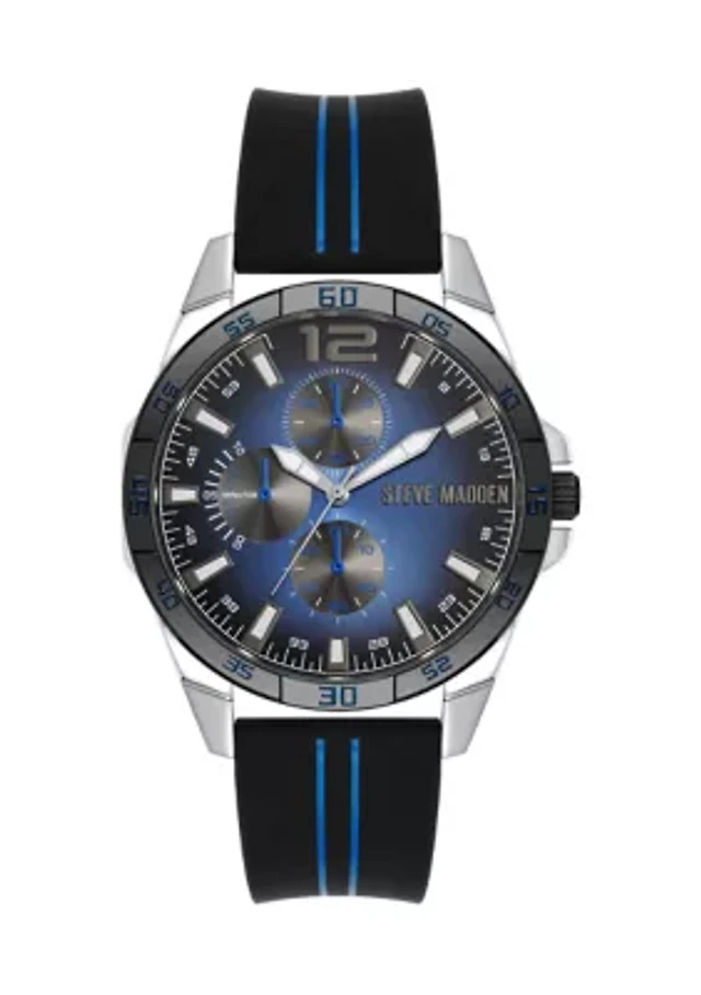 Men's Distinctive Black Silicone Strap with Navy Stripe Detail Watch