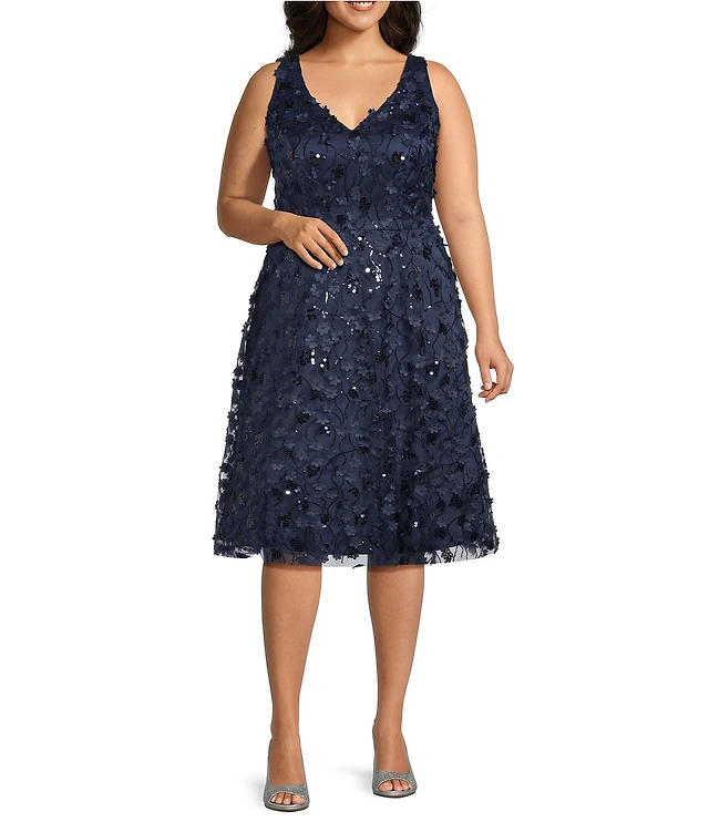 Mac Duggal Embroidered Mesh Floral Sweetheart Neck Sleeveless A-Line Midi Dress