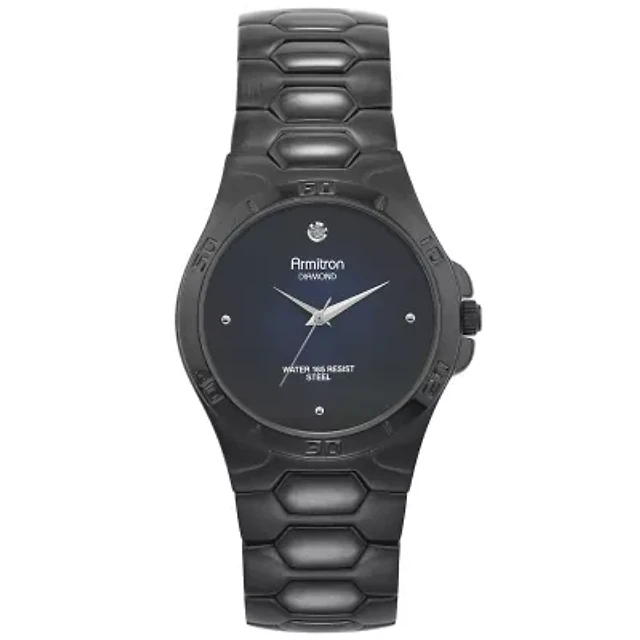 Armitron® Mens Black Dial Stainless Steel Watch