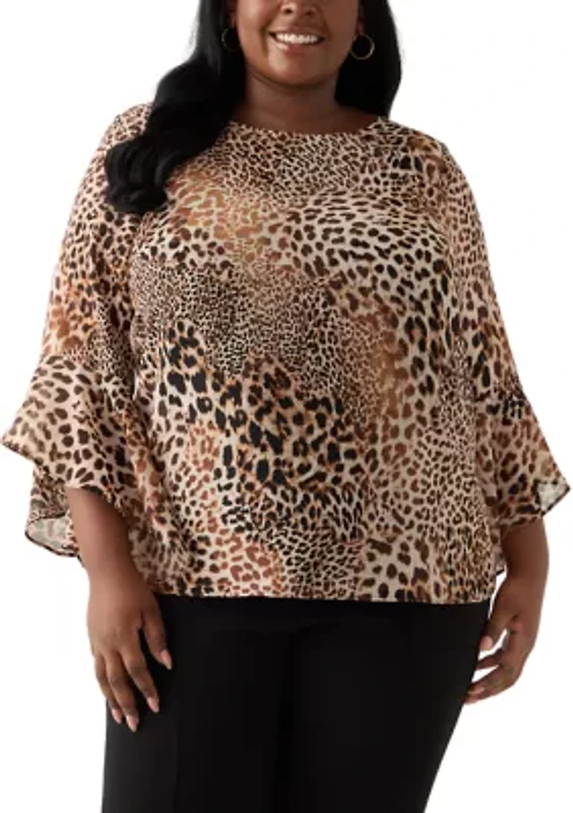 Plus V-Neck Animal Print Chiffon Maxi Dress