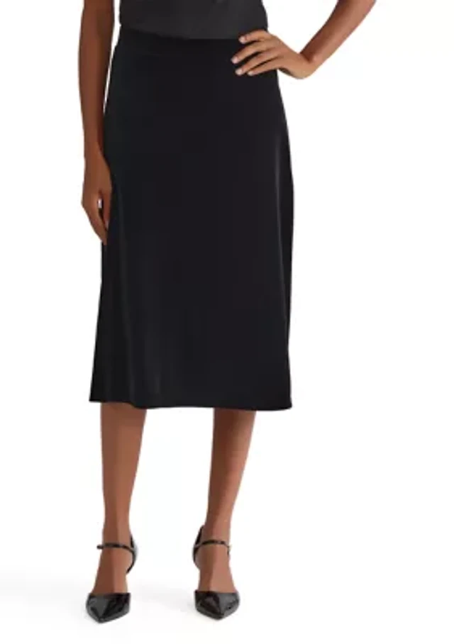 3-Piece Luxe Crepe Skirt Suit with Waist Brooch Detail