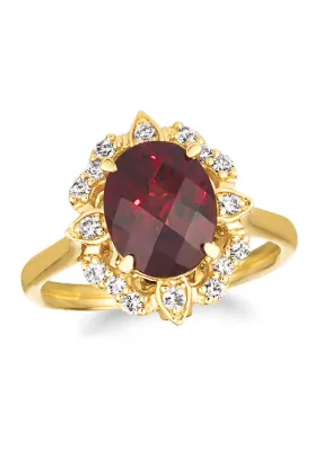 Marquise-Cut Natural Ruby & Diamond Necklace 1/8 ct tw 10K Yellow Gold 18"