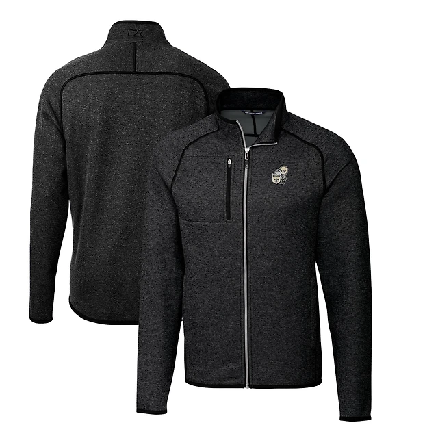 Men's Cutter & Buck Heather Charcoal New Orleans Saints Throwback Logo Mainsail Sweater-Knit Big & Tall Full-Zip Pullover Jacket