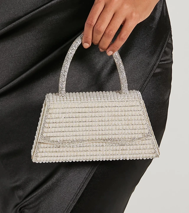 What A Glam Cutie Faux Pearl Rhinestone Mini Bag