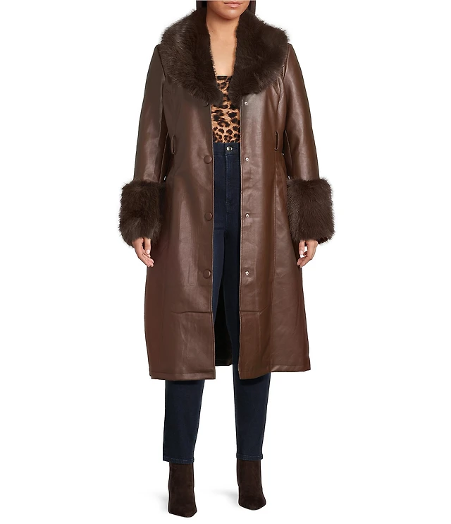 Azalea Wang Plus Size Kaya Faux Fur Oversize Shawl Collar Belted Trench Coat