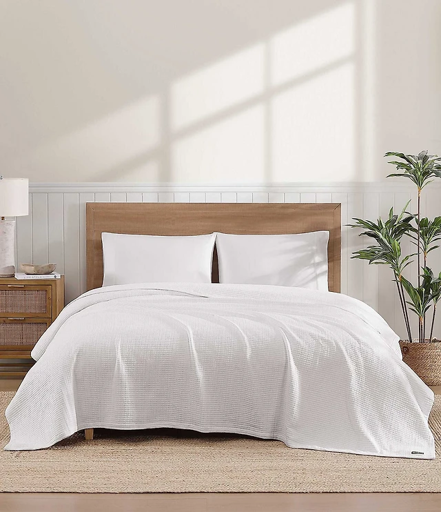Tommy Bahama Bamboo Woven White Yarn Dyed Bed Blanket
