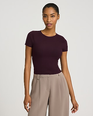 Fitted Ribbed Mock Neck Long Sleeve Tee